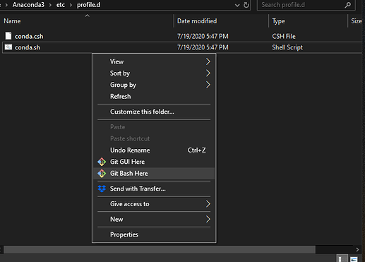 command available in Git Bash, you need to add conda’s shell script to your .bashrc