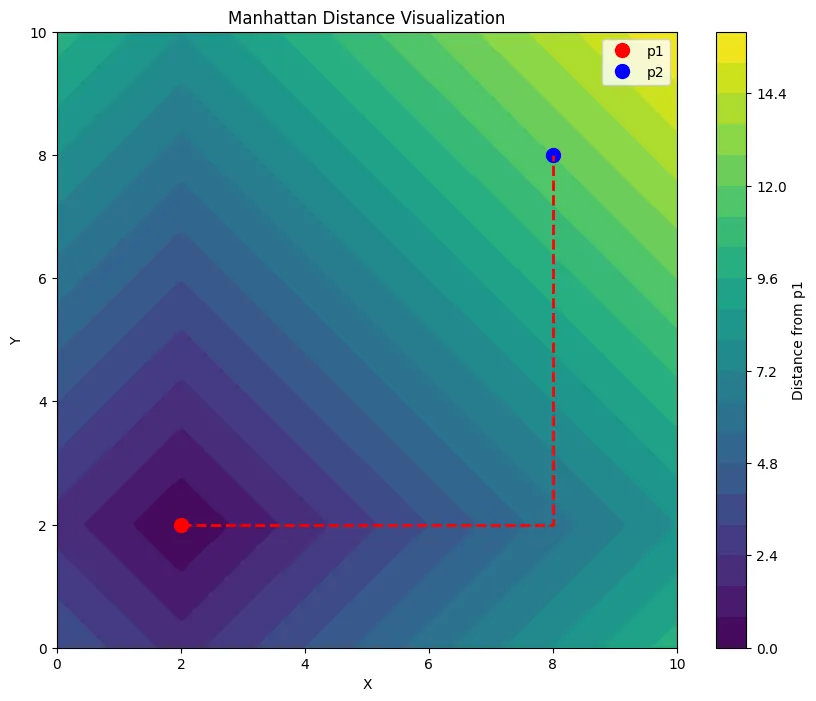 d = \left| {x_1 - x_2 } \right| + \left| {y_1 - y_2 } \right|pytorch的快速实现:
