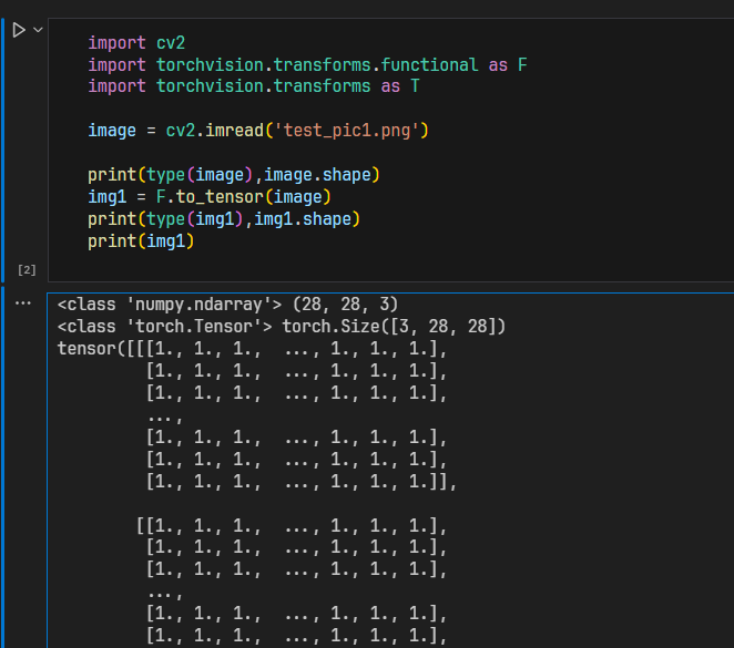 这里从图片转成向量开始,利用opencv配合torchvision,转成tensor还是比较容易的。