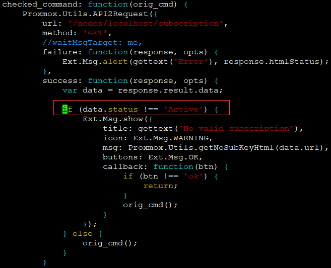 修改文件/usr/share/javascript/proxmox-widget-toolkit/proxmoxlib.js